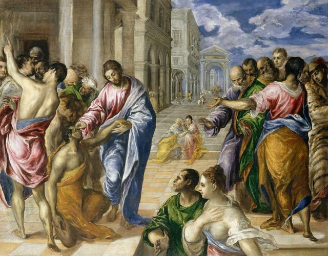 El Greco (Domenikos Theotokopoulos) (Greek, 1541–1614). Christ Healing the Blind, ca. 1570. Oil on canvas, 47 x 57 1/2 in. (119.4 x 146.1 cm). Gift of Mr. and Mrs. Charles Wrightsman, 1978 (1978.416)